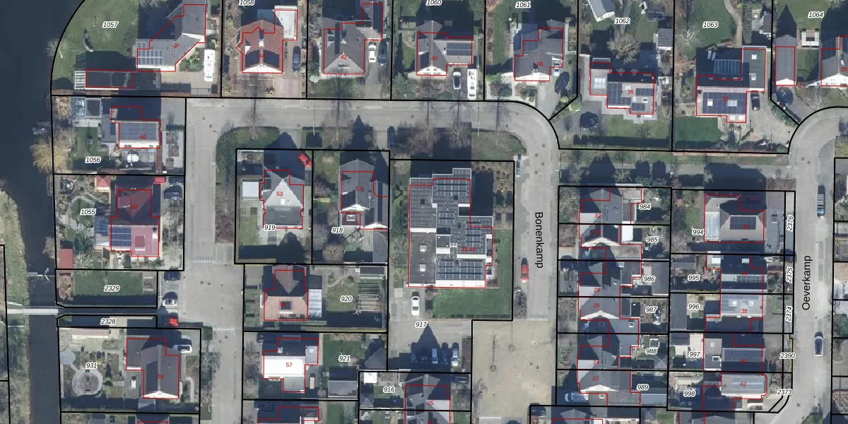 Het perceel waarop Bonenkamp 41 staat heeft een oppervlakte van 1350 m². Dit is een zeer groot perceel. De perceeloppervlakte wordt geregistreerd door het Kadaster. Gedetailleerde informatie over de maten van dit perceel kunt u vinden in het rapport Kadastrale kaart met maatvoering van Bonenkamp 41.