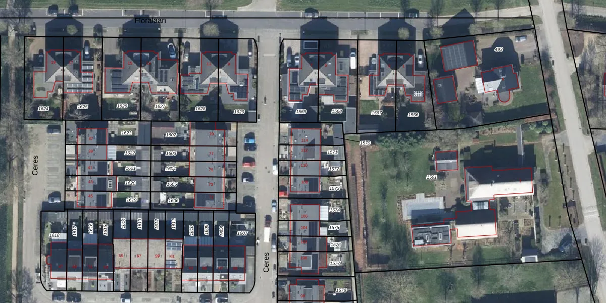 Gebruik de zoekbalk of klik op een perceel voor informatie over de adressen binnen dit perceel.