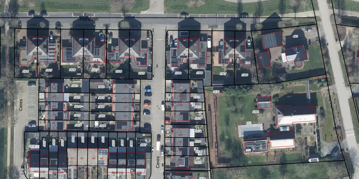 Gebruik de zoekbalk of klik op een perceel voor informatie over de adressen binnen dit perceel.