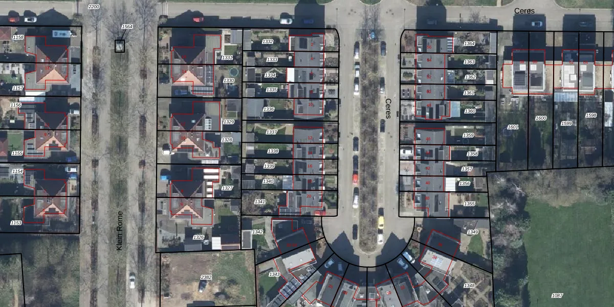 Het perceel waarop Ceres 14 staat heeft een oppervlakte van 160 m². Dit is een middelgroot perceel. De perceeloppervlakte wordt geregistreerd door het Kadaster. Gedetailleerde informatie over de maten van dit perceel kunt u vinden in het rapport Kadastrale kaart met maatvoering van Ceres 14.