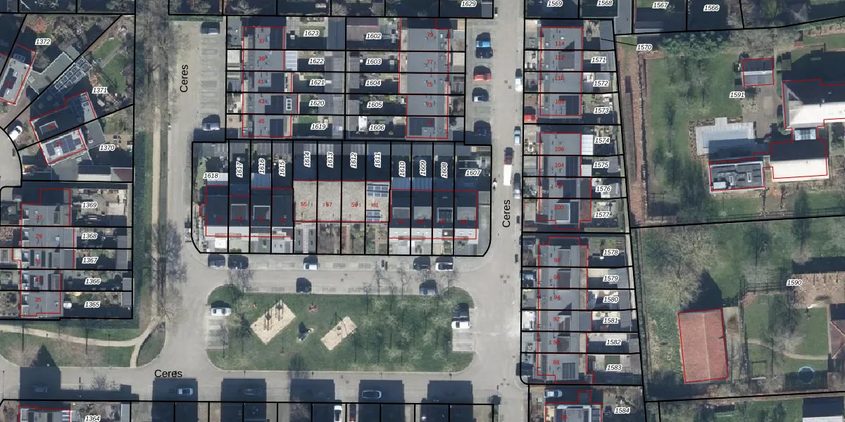 Het perceel waarop Ceres 65 staat heeft een oppervlakte van 138 m². Dit is een middelgroot perceel. De perceeloppervlakte wordt geregistreerd door het Kadaster. Gedetailleerde informatie over de maten van dit perceel kunt u vinden in het rapport Kadastrale kaart met maatvoering van Ceres 65.