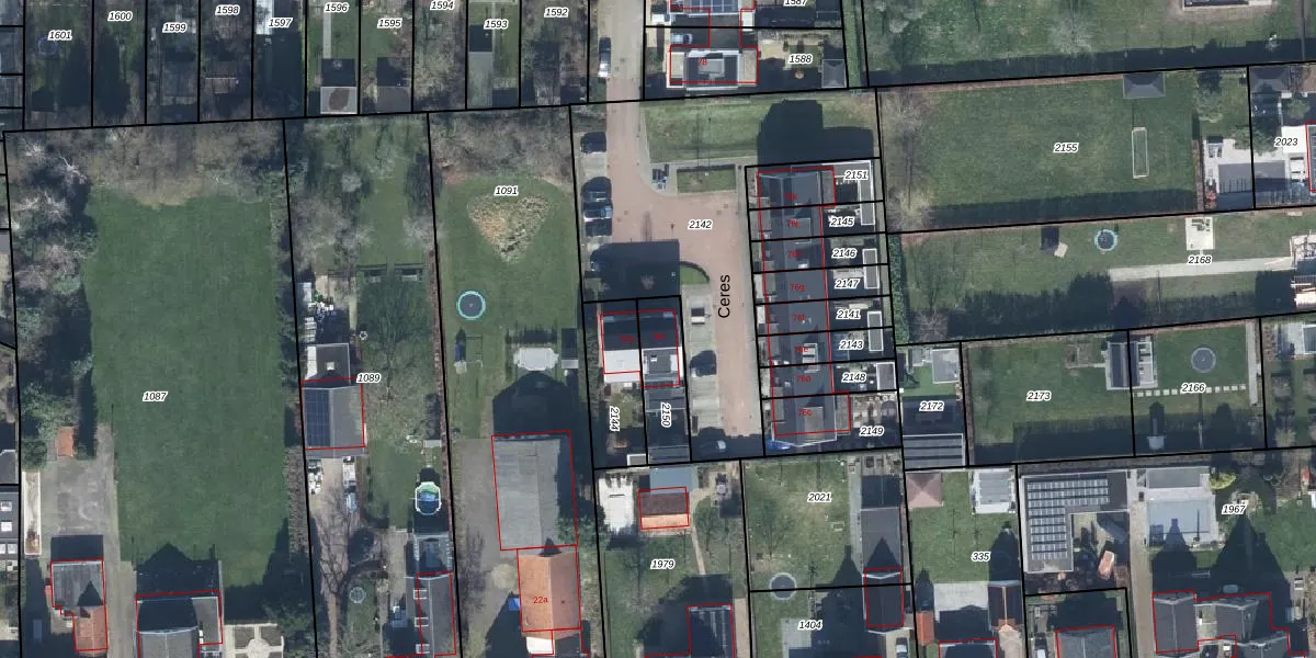 Gebruik de zoekbalk of klik op een perceel voor informatie over de adressen binnen dit perceel.