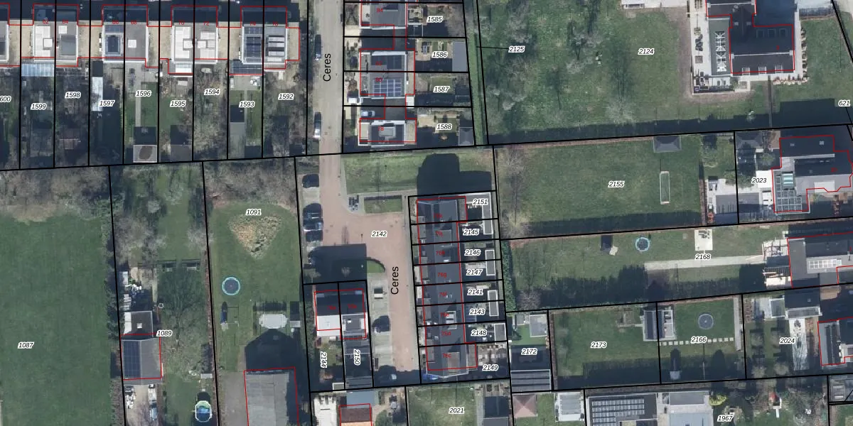 Gebruik de zoekbalk of klik op een perceel voor informatie over de adressen binnen dit perceel.