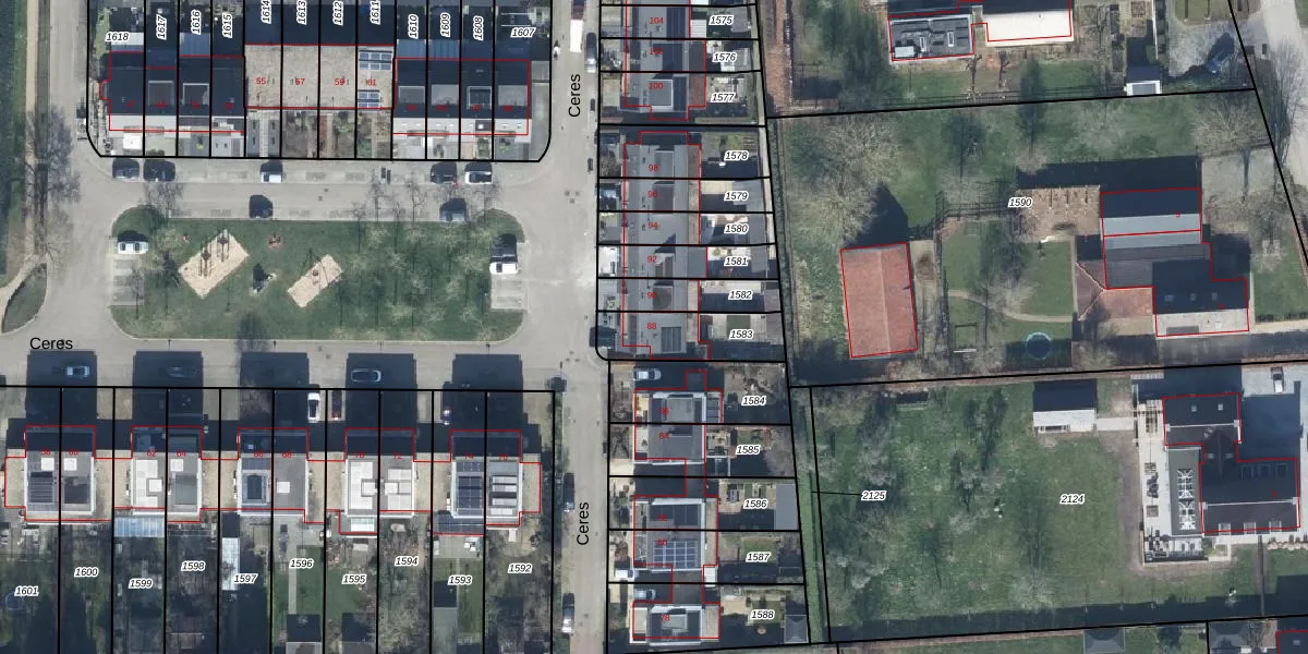 Het perceel waarop Ceres 88 staat heeft een oppervlakte van 214 m². Dit is een middelgroot perceel. De perceeloppervlakte wordt geregistreerd door het Kadaster. Gedetailleerde informatie over de maten van dit perceel kunt u vinden in het rapport Kadastrale kaart met maatvoering van Ceres 88.