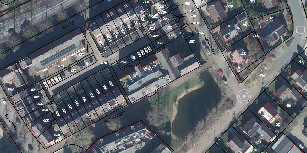 Het perceel waarop De Beeringen 33 staat heeft een oppervlakte van 1169 m². Dit is een zeer groot perceel. De perceeloppervlakte wordt geregistreerd door het Kadaster. Gedetailleerde informatie over de maten van dit perceel kunt u vinden in het rapport Kadastrale kaart met maatvoering van De Beeringen 33.