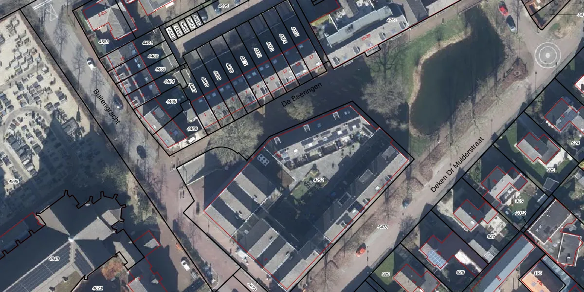 Het perceel waarop De Beeringen 4 staat heeft een oppervlakte van 2907 m². Dit is een zeer groot perceel. De perceeloppervlakte wordt geregistreerd door het Kadaster. Gedetailleerde informatie over de maten van dit perceel kunt u vinden in het rapport Kadastrale kaart met maatvoering van De Beeringen 4.