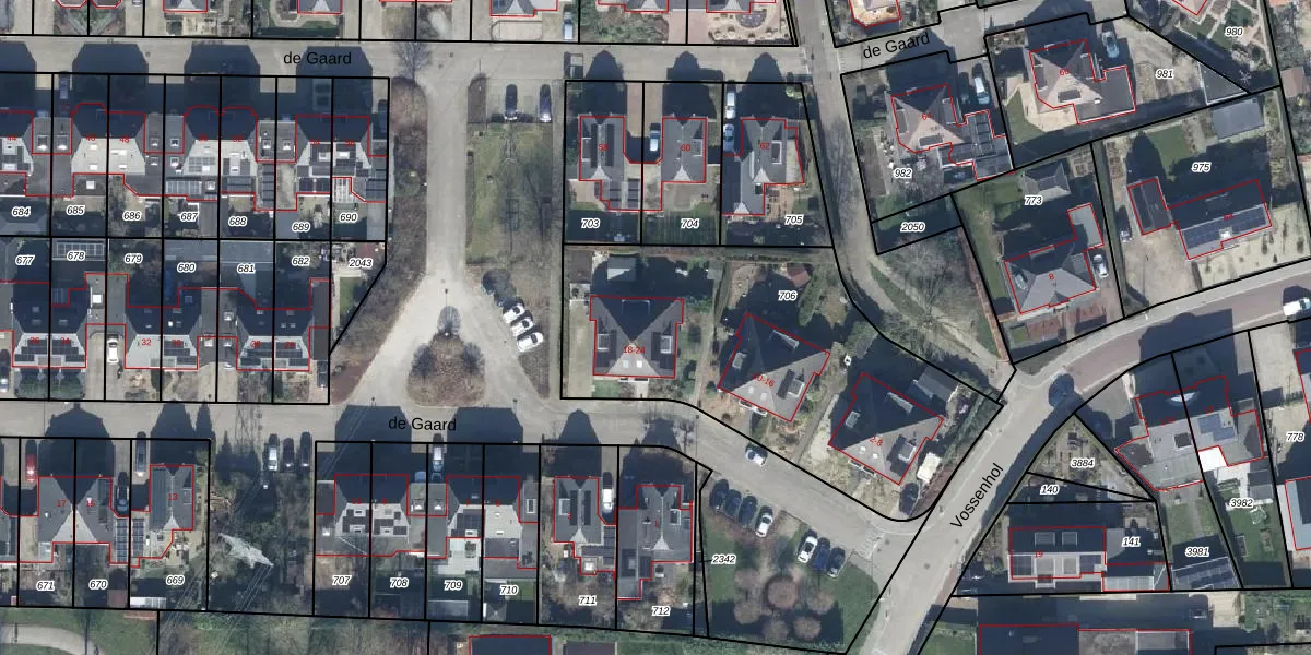 Het perceel waarop de Gaard 20 staat heeft een oppervlakte van 1660 m². Dit is een zeer groot perceel. De perceeloppervlakte wordt geregistreerd door het Kadaster. Gedetailleerde informatie over de maten van dit perceel kunt u vinden in het rapport Kadastrale kaart met maatvoering van de Gaard 20.