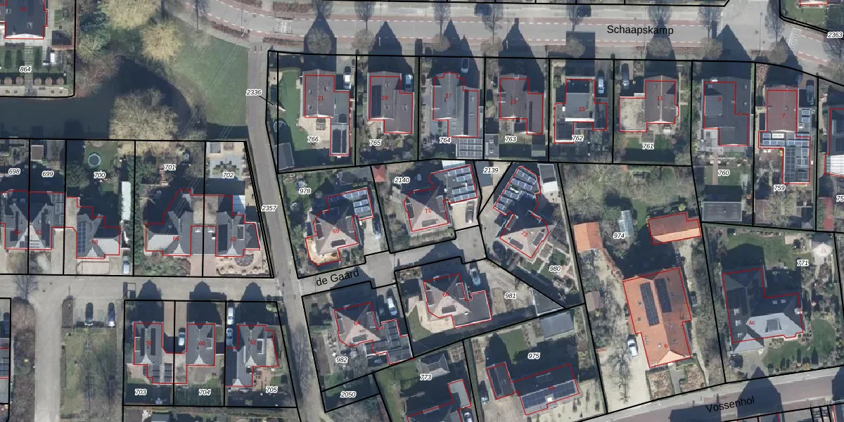 Het perceel waarop de Gaard 71 staat heeft een oppervlakte van 455 m². Dit is een groot perceel. De perceeloppervlakte wordt geregistreerd door het Kadaster. Gedetailleerde informatie over de maten van dit perceel kunt u vinden in het rapport Kadastrale kaart met maatvoering van de Gaard 71.