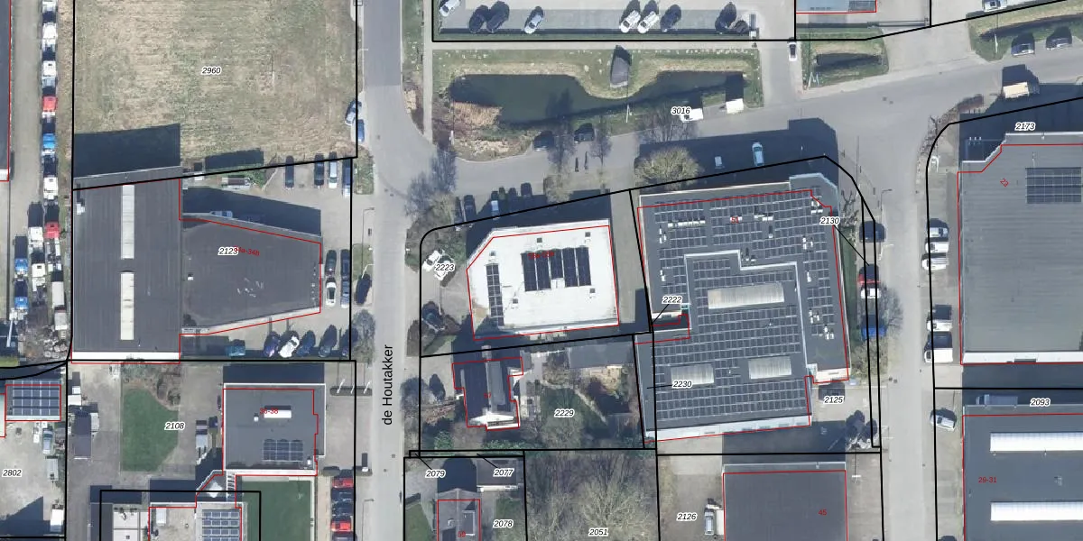 Het perceel waarop de Houtakker 55-f staat heeft een oppervlakte van 988 m². Dit is een groot perceel. De perceeloppervlakte wordt geregistreerd door het Kadaster. Gedetailleerde informatie over de maten van dit perceel kunt u vinden in het rapport Kadastrale kaart met maatvoering van de Houtakker 55-f.