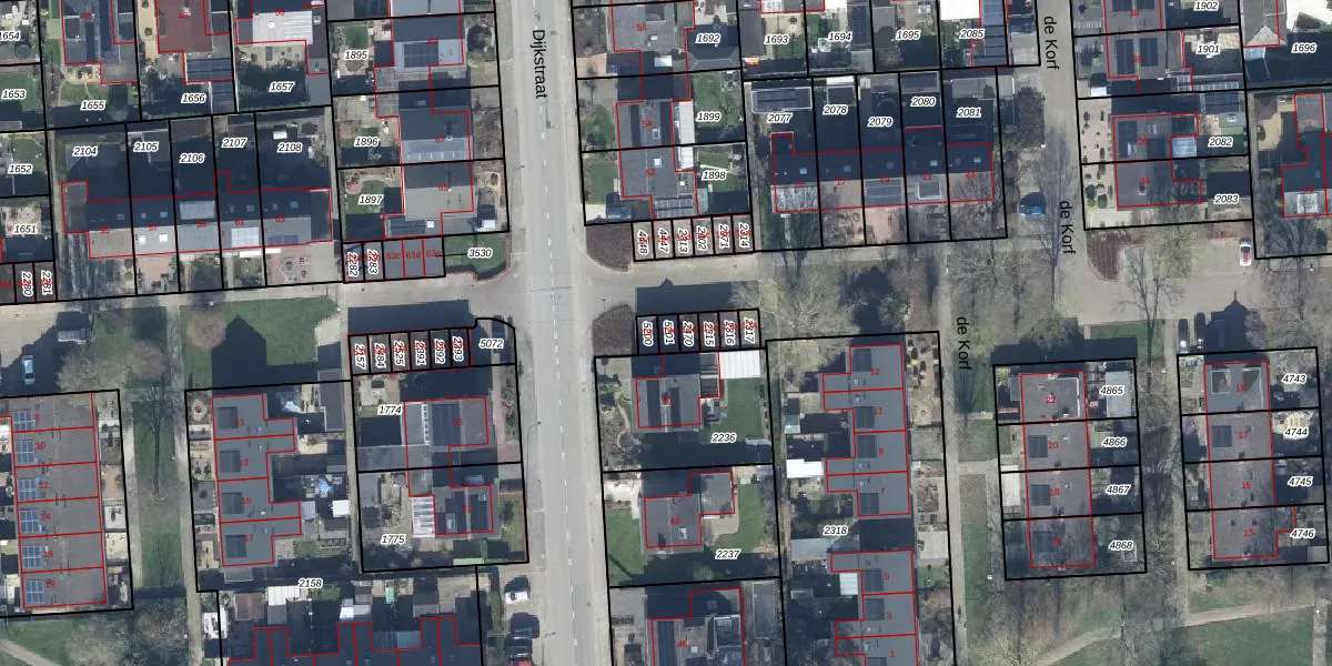 Gebruik de zoekbalk of klik op een perceel voor informatie over de adressen binnen dit perceel.
