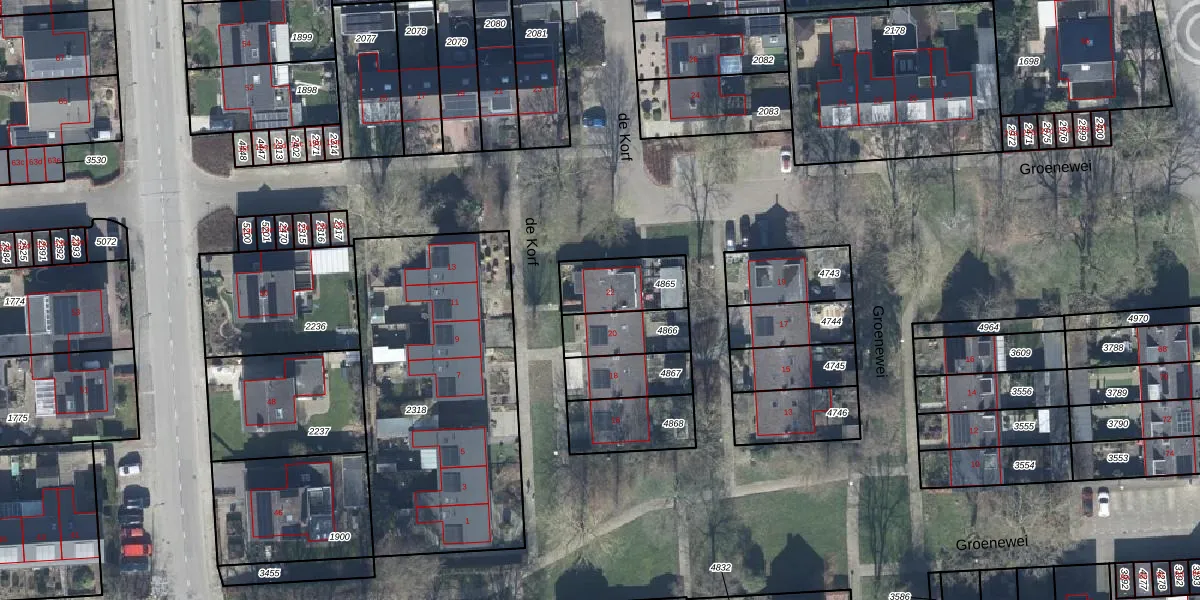 Het perceel waarop de Korf 22 staat heeft een oppervlakte van 187 m². Dit is een middelgroot perceel. De perceeloppervlakte wordt geregistreerd door het Kadaster. Gedetailleerde informatie over de maten van dit perceel kunt u vinden in het rapport Kadastrale kaart met maatvoering van de Korf 22.