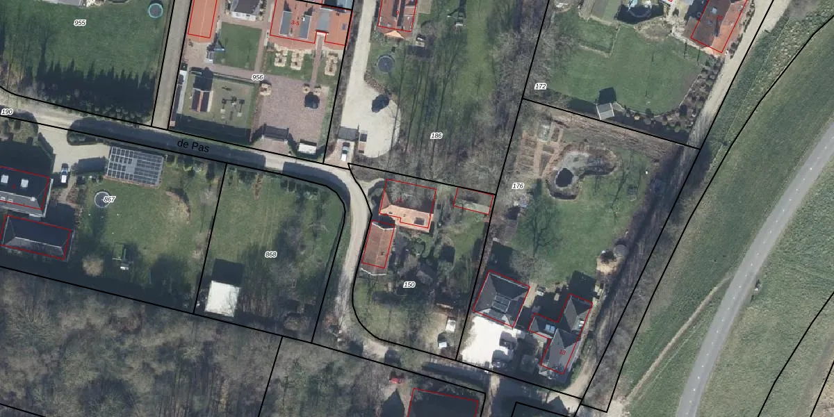 de Pas 11 is gelegen op kadastraal perceel BML02L150. Deze kadastrale aanduiding is uniek en wordt gebruikt door het Kadaster om eigendomsrechten en andere zakelijke rechten vast te leggen. Het perceel maakt onderdeel uit van de kadastrale gemeente Bemmel.