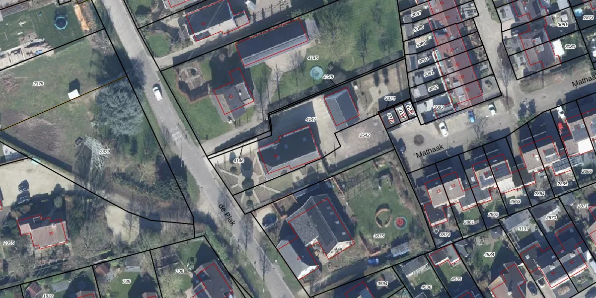 Gebruik de zoekbalk of klik op een perceel voor informatie over de adressen binnen dit perceel.
