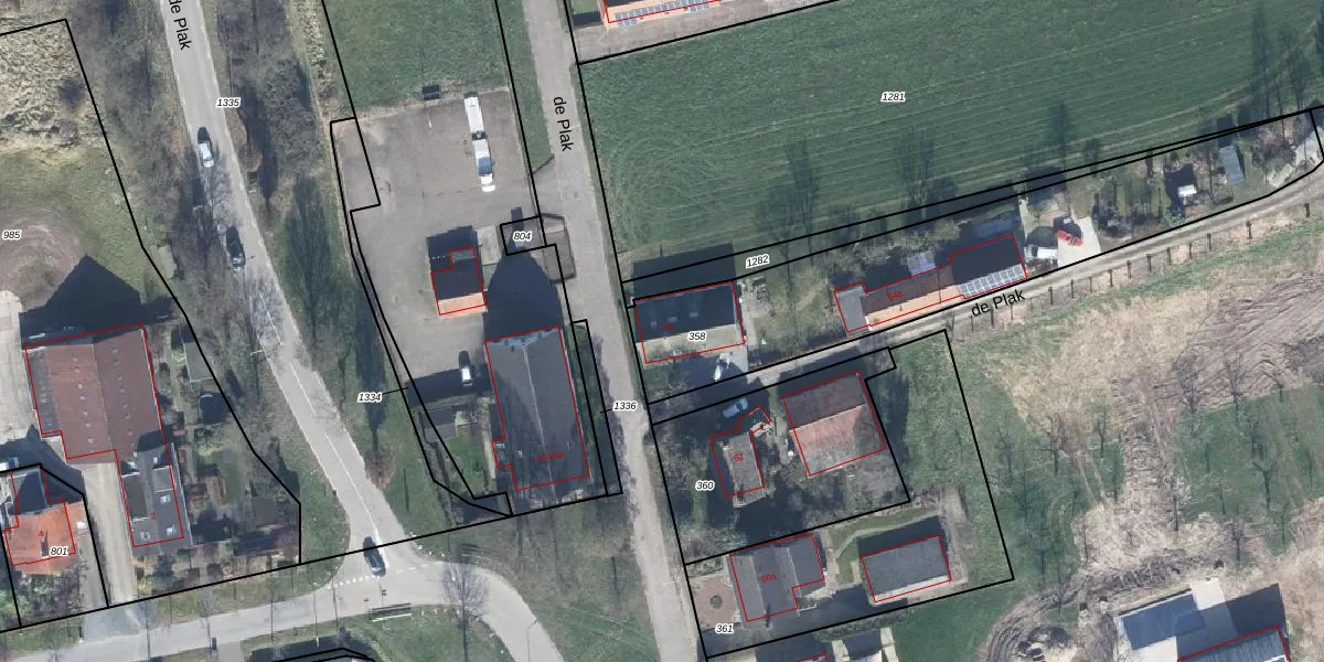 Het perceel waarop de Plak 64 staat heeft een oppervlakte van 1385 m². Dit is een zeer groot perceel. De perceeloppervlakte wordt geregistreerd door het Kadaster. Gedetailleerde informatie over de maten van dit perceel kunt u vinden in het rapport Kadastrale kaart met maatvoering van de Plak 64.