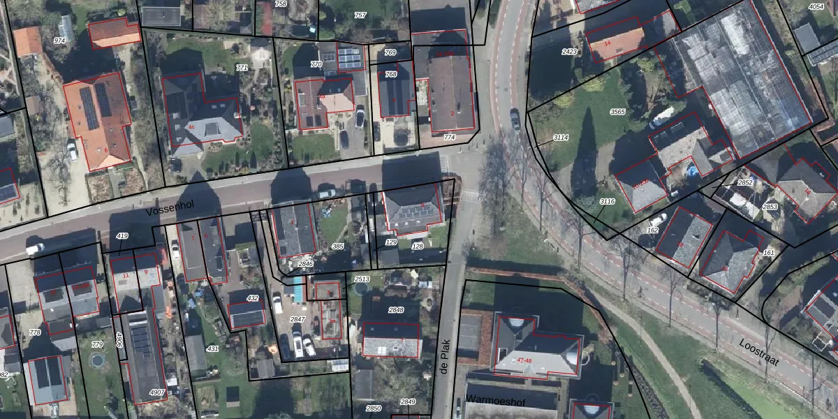 Gebruik de zoekbalk of klik op een perceel voor informatie over de adressen binnen dit perceel.