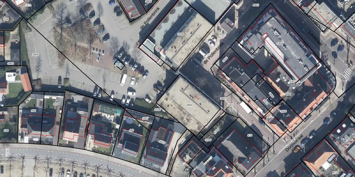 Het perceel waarop de Pollenbrink 1-9 staat heeft een oppervlakte van 629 m². Dit is een groot perceel. De perceeloppervlakte wordt geregistreerd door het Kadaster. Gedetailleerde informatie over de maten van dit perceel kunt u vinden in het rapport Kadastrale kaart met maatvoering van de Pollenbrink 1-9.