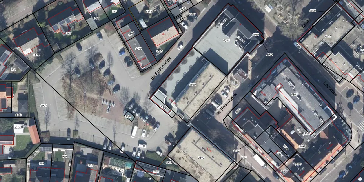 Het perceel waarop de Pollenbrink 2-13 staat heeft een oppervlakte van 835 m². Dit is een groot perceel. De perceeloppervlakte wordt geregistreerd door het Kadaster. Gedetailleerde informatie over de maten van dit perceel kunt u vinden in het rapport Kadastrale kaart met maatvoering van de Pollenbrink 2-13.