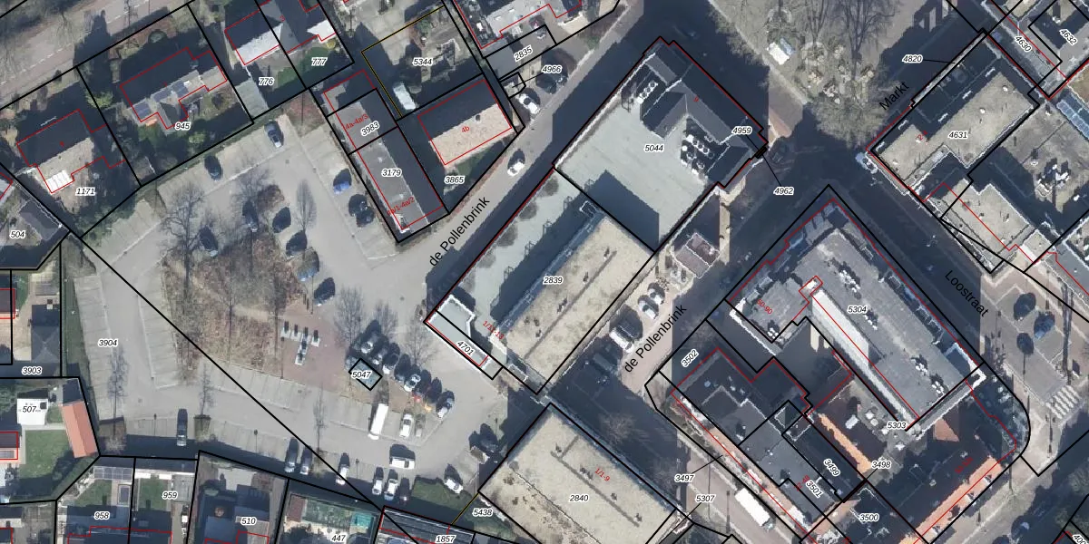 Het perceel waarop de Pollenbrink 2-15 staat heeft een oppervlakte van 835 m². Dit is een groot perceel. De perceeloppervlakte wordt geregistreerd door het Kadaster. Gedetailleerde informatie over de maten van dit perceel kunt u vinden in het rapport Kadastrale kaart met maatvoering van de Pollenbrink 2-15.