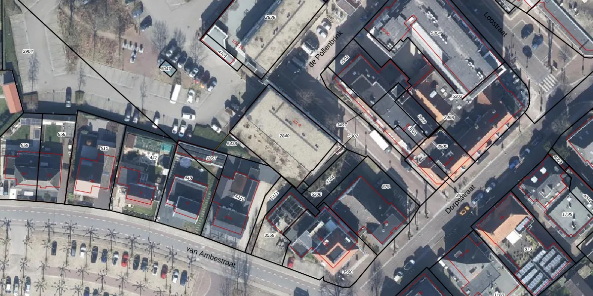 Het perceel waarop de Pollenbrink 2-3 staat heeft een oppervlakte van 629 m². Dit is een groot perceel. De perceeloppervlakte wordt geregistreerd door het Kadaster. Gedetailleerde informatie over de maten van dit perceel kunt u vinden in het rapport Kadastrale kaart met maatvoering van de Pollenbrink 2-3.