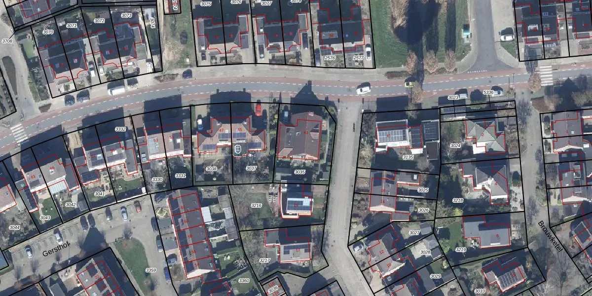 Gebruik de zoekbalk of klik op een perceel voor informatie over de adressen binnen dit perceel.
