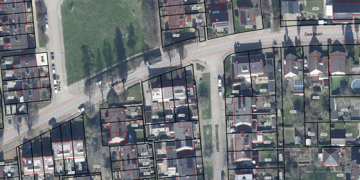 Gebruik de zoekbalk of klik op een perceel voor informatie over de adressen binnen dit perceel.