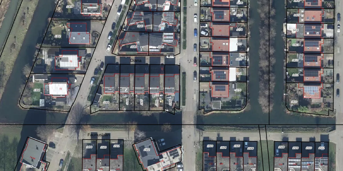 Het perceel waarop Diana 1 staat heeft een oppervlakte van 240 m². Dit is een middelgroot perceel. De perceeloppervlakte wordt geregistreerd door het Kadaster. Gedetailleerde informatie over de maten van dit perceel kunt u vinden in het rapport Kadastrale kaart met maatvoering van Diana 1.