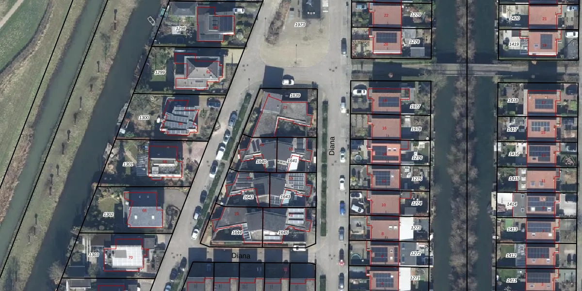 Het perceel waarop Diana 15 staat heeft een oppervlakte van 165 m². Dit is een middelgroot perceel. De perceeloppervlakte wordt geregistreerd door het Kadaster. Gedetailleerde informatie over de maten van dit perceel kunt u vinden in het rapport Kadastrale kaart met maatvoering van Diana 15.