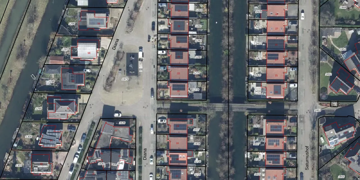 Het perceel waarop Diana 20 staat heeft een oppervlakte van 289 m². Dit is een middelgroot perceel. De perceeloppervlakte wordt geregistreerd door het Kadaster. Gedetailleerde informatie over de maten van dit perceel kunt u vinden in het rapport Kadastrale kaart met maatvoering van Diana 20.