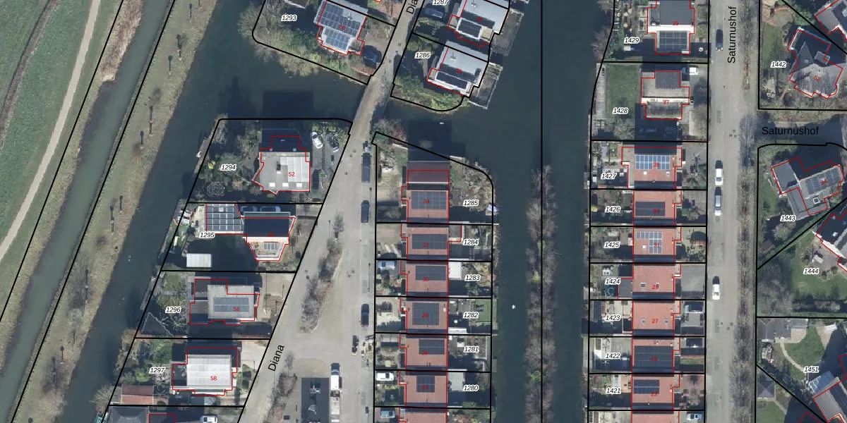 Het perceel waarop Diana 34 staat heeft een oppervlakte van 457 m². Dit is een groot perceel. De perceeloppervlakte wordt geregistreerd door het Kadaster. Gedetailleerde informatie over de maten van dit perceel kunt u vinden in het rapport Kadastrale kaart met maatvoering van Diana 34.