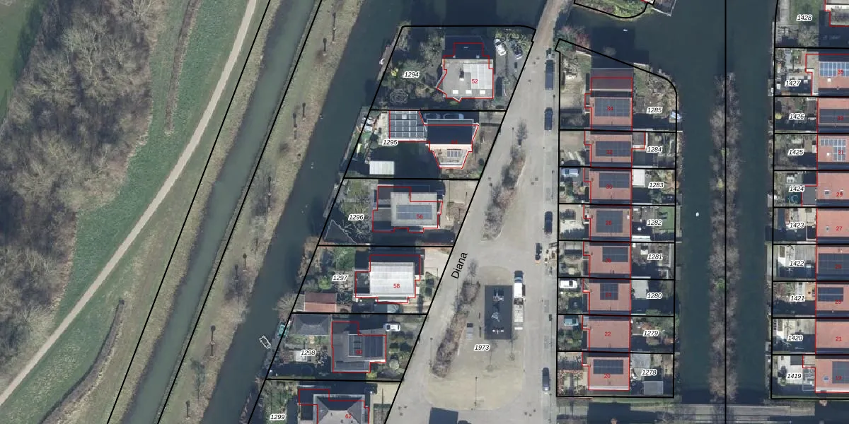 Het perceel waarop Diana 56 staat heeft een oppervlakte van 511 m². Dit is een groot perceel. De perceeloppervlakte wordt geregistreerd door het Kadaster. Gedetailleerde informatie over de maten van dit perceel kunt u vinden in het rapport Kadastrale kaart met maatvoering van Diana 56.
