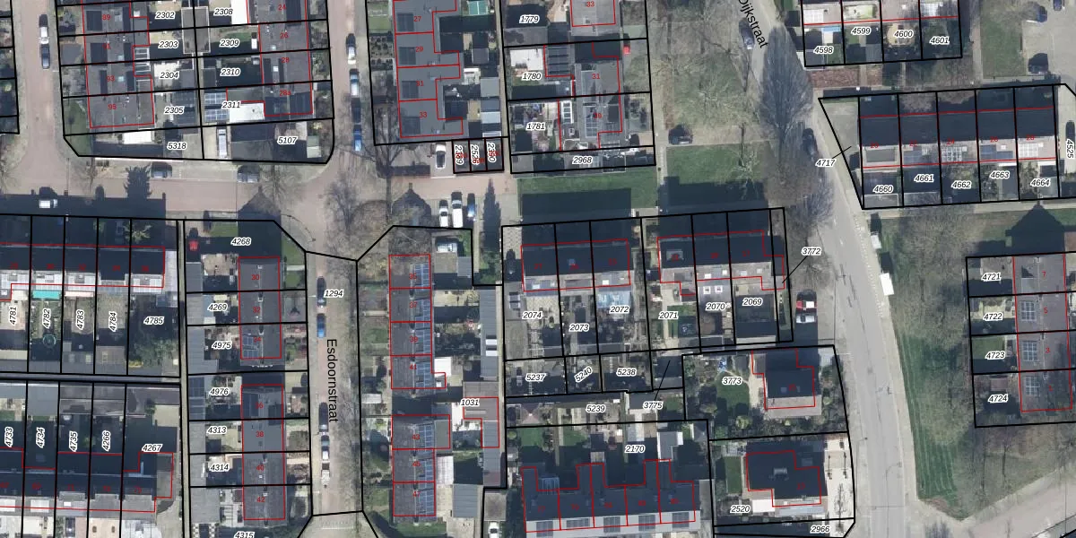 Gebruik de zoekbalk of klik op een perceel voor informatie over de adressen binnen dit perceel.