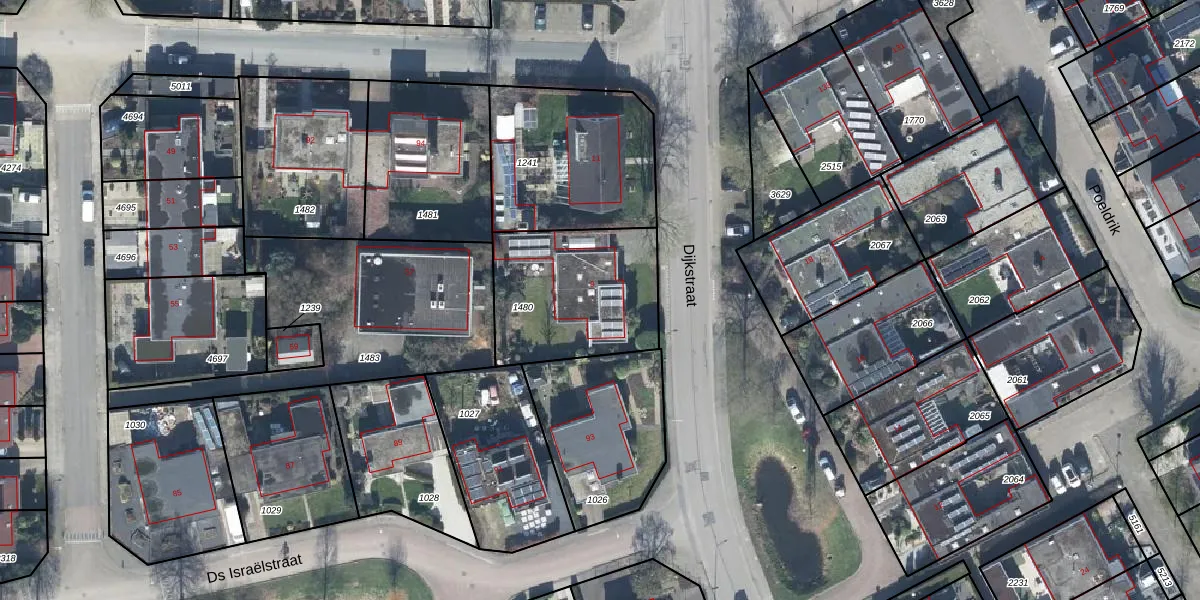 Het perceel waarop Dijkstraat 9 staat heeft een oppervlakte van 592 m². Dit is een groot perceel. De perceeloppervlakte wordt geregistreerd door het Kadaster. Gedetailleerde informatie over de maten van dit perceel kunt u vinden in het rapport Kadastrale kaart met maatvoering van Dijkstraat 9.