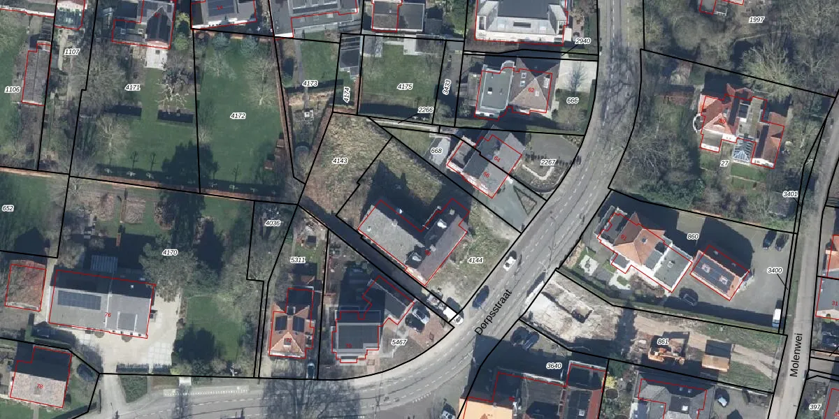 Het perceel waarop Dorpsstraat 68-g staat heeft een oppervlakte van 922 m². Dit is een groot perceel. De perceeloppervlakte wordt geregistreerd door het Kadaster. Gedetailleerde informatie over de maten van dit perceel kunt u vinden in het rapport Kadastrale kaart met maatvoering van Dorpsstraat 68-g.