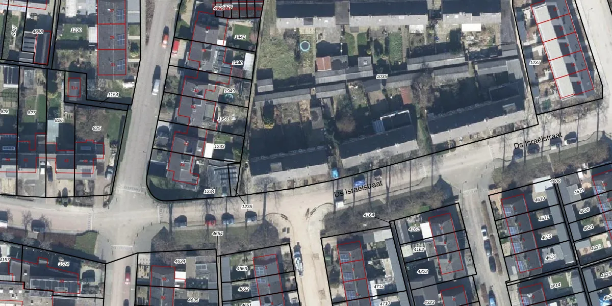 Het perceel waarop Ds Israëlstraat 55 staat heeft een oppervlakte van 5375 m². Dit is een zeer groot perceel. De perceeloppervlakte wordt geregistreerd door het Kadaster. Gedetailleerde informatie over de maten van dit perceel kunt u vinden in het rapport Kadastrale kaart met maatvoering van Ds Israëlstraat 55.