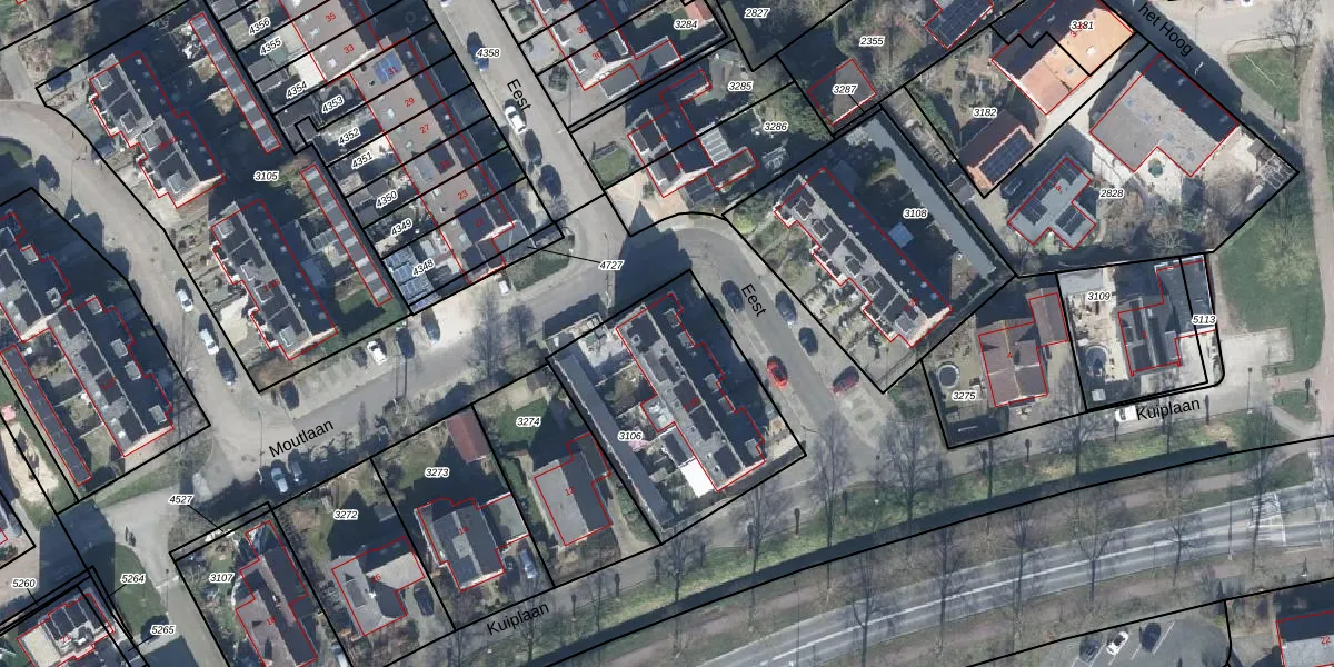 Het perceel waarop Eest 17 staat heeft een oppervlakte van 840 m². Dit is een groot perceel. De perceeloppervlakte wordt geregistreerd door het Kadaster. Gedetailleerde informatie over de maten van dit perceel kunt u vinden in het rapport Kadastrale kaart met maatvoering van Eest 17.