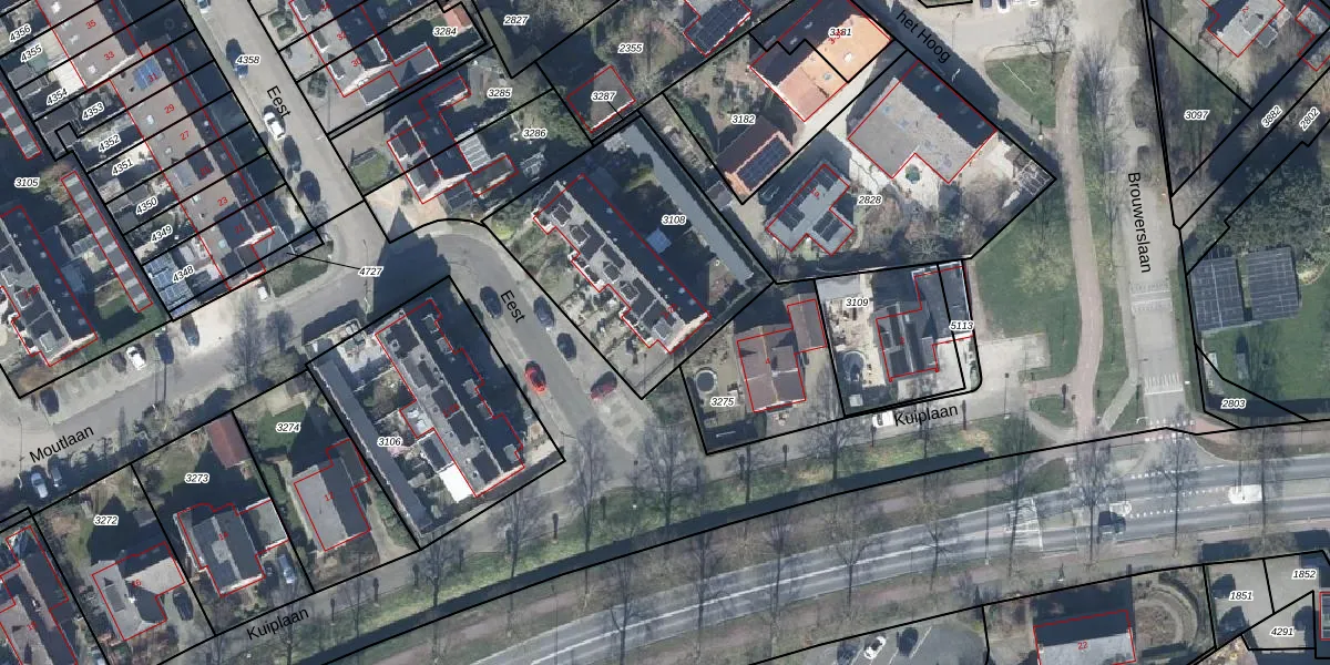 Het perceel waarop Eest 2 staat heeft een oppervlakte van 955 m². Dit is een groot perceel. De perceeloppervlakte wordt geregistreerd door het Kadaster. Gedetailleerde informatie over de maten van dit perceel kunt u vinden in het rapport Kadastrale kaart met maatvoering van Eest 2.
