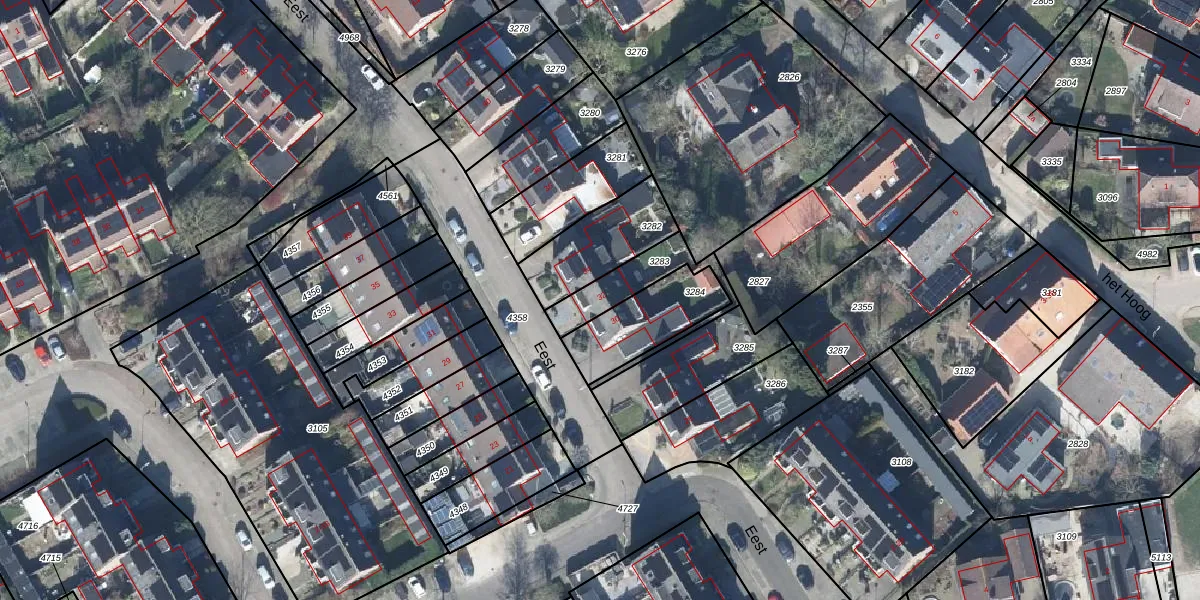 Het perceel waarop Eest 32 staat heeft een oppervlakte van 180 m². Dit is een middelgroot perceel. De perceeloppervlakte wordt geregistreerd door het Kadaster. Gedetailleerde informatie over de maten van dit perceel kunt u vinden in het rapport Kadastrale kaart met maatvoering van Eest 32.