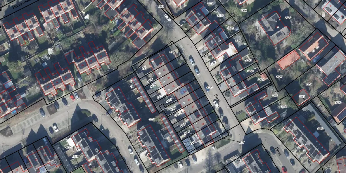 Gebruik de zoekbalk of klik op een perceel voor informatie over de adressen binnen dit perceel.