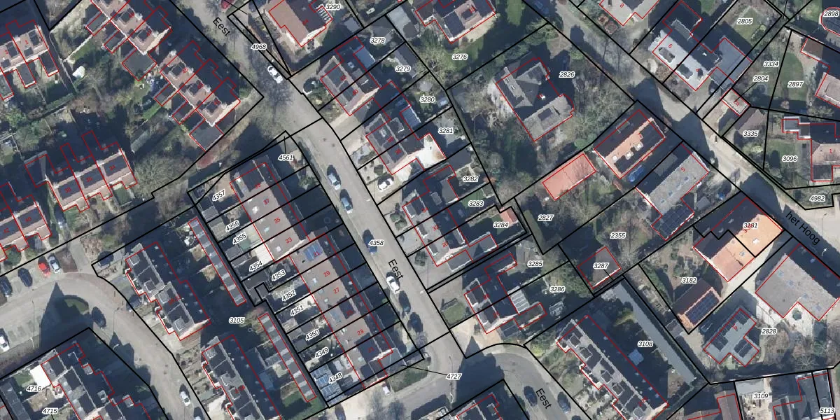 Het perceel waarop Eest 34 staat heeft een oppervlakte van 259 m². Dit is een middelgroot perceel. De perceeloppervlakte wordt geregistreerd door het Kadaster. Gedetailleerde informatie over de maten van dit perceel kunt u vinden in het rapport Kadastrale kaart met maatvoering van Eest 34.