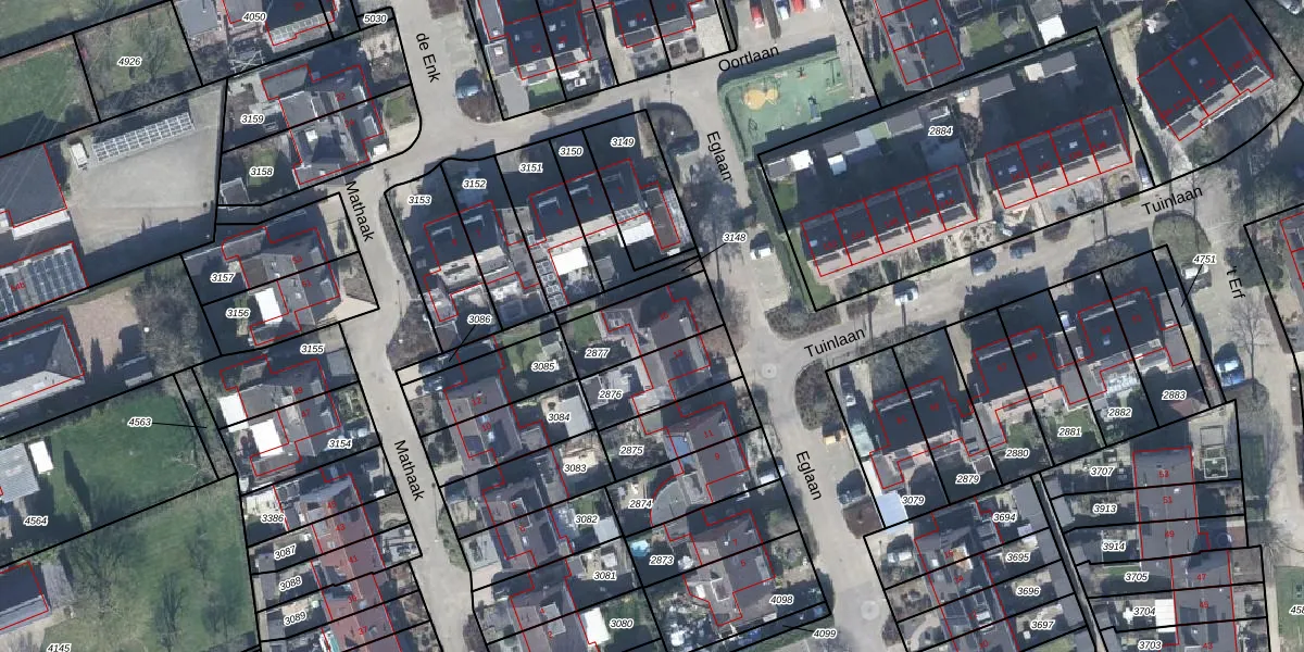Het perceel waarop Eglaan 15 staat heeft een oppervlakte van 201 m². Dit is een middelgroot perceel. De perceeloppervlakte wordt geregistreerd door het Kadaster. Gedetailleerde informatie over de maten van dit perceel kunt u vinden in het rapport Kadastrale kaart met maatvoering van Eglaan 15.