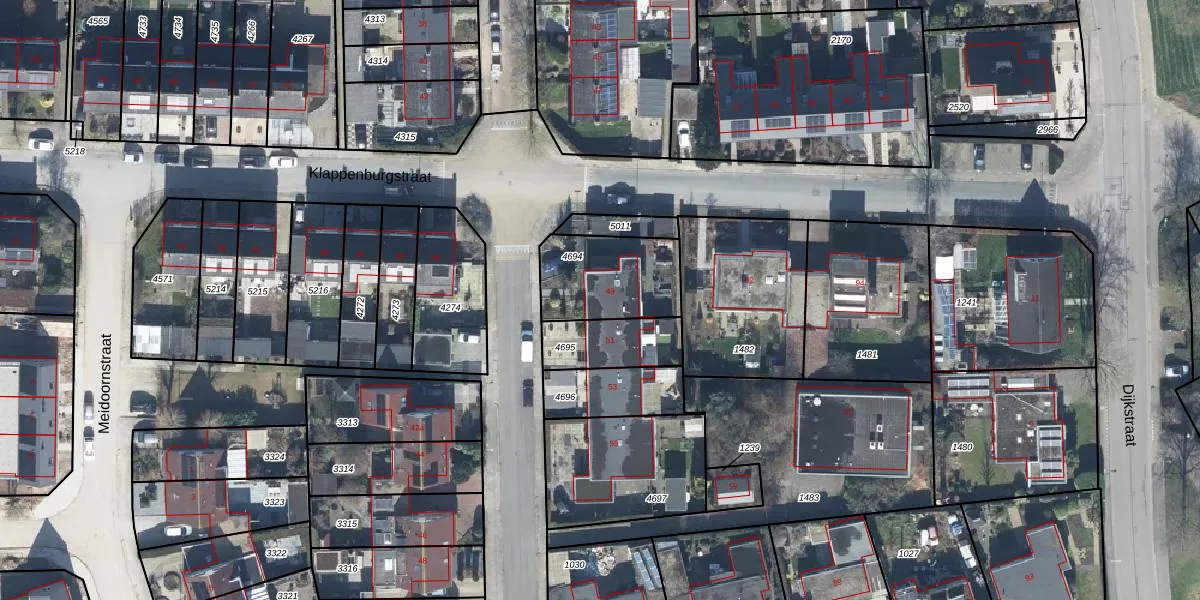 Gebruik de zoekbalk of klik op een perceel voor informatie over de adressen binnen dit perceel.