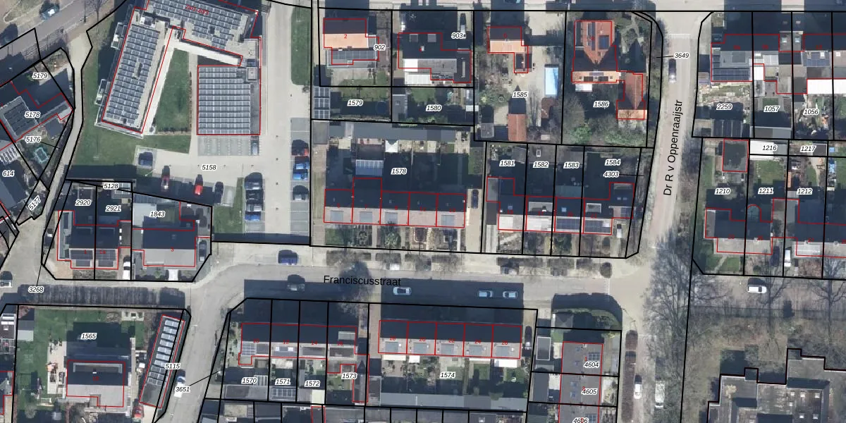Het perceel waarop Franciscusstraat 11 staat heeft een oppervlakte van 1230 m². Dit is een zeer groot perceel. De perceeloppervlakte wordt geregistreerd door het Kadaster. Gedetailleerde informatie over de maten van dit perceel kunt u vinden in het rapport Kadastrale kaart met maatvoering van Franciscusstraat 11.