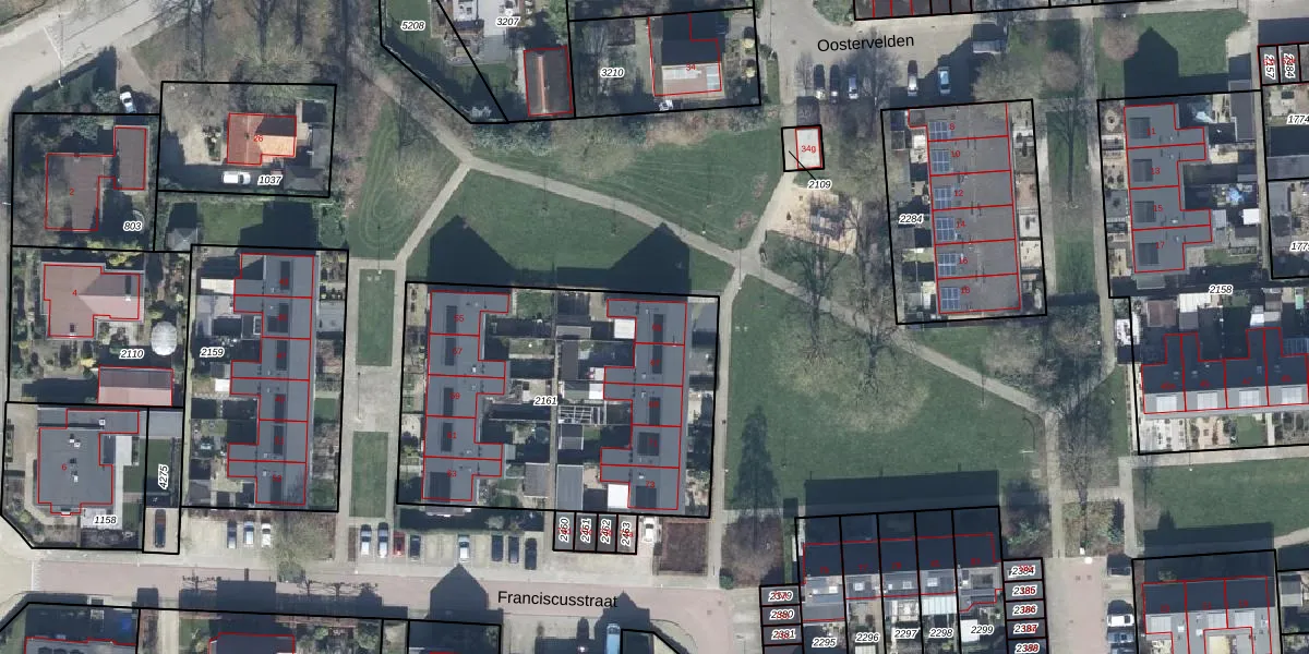 Het perceel waarop Franciscusstraat 65 staat heeft een oppervlakte van 1630 m². Dit is een zeer groot perceel. De perceeloppervlakte wordt geregistreerd door het Kadaster. Gedetailleerde informatie over de maten van dit perceel kunt u vinden in het rapport Kadastrale kaart met maatvoering van Franciscusstraat 65.