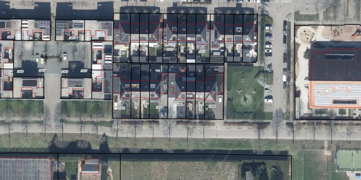 Gebruik de zoekbalk of klik op een perceel voor informatie over de adressen binnen dit perceel.