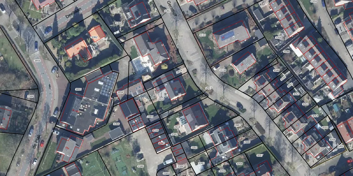 Gebruik de zoekbalk of klik op een perceel voor informatie over de adressen binnen dit perceel.