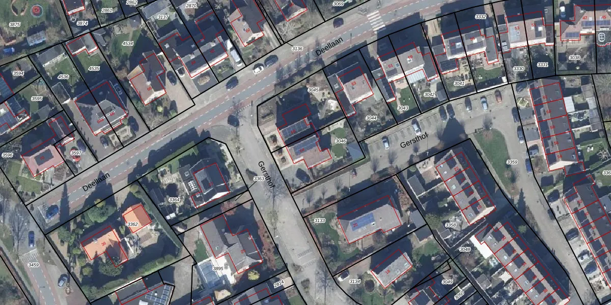 Gebruik de zoekbalk of klik op een perceel voor informatie over de adressen binnen dit perceel.