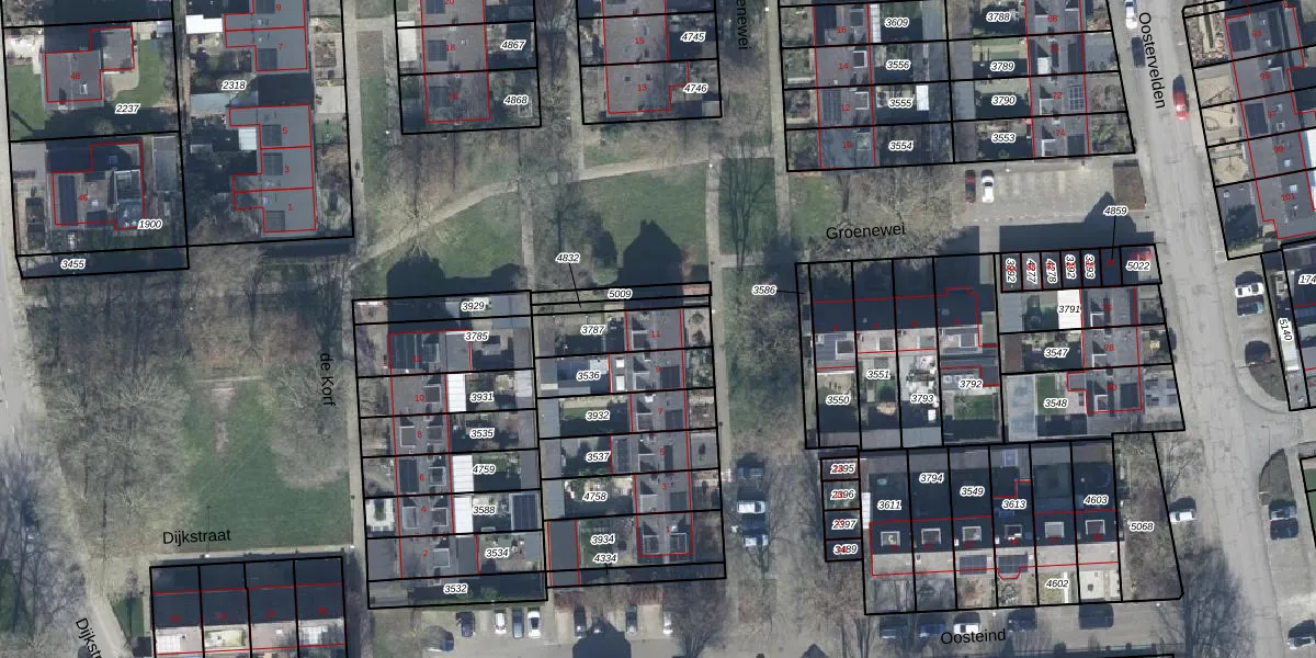 Gebruik de zoekbalk of klik op een perceel voor informatie over de adressen binnen dit perceel.