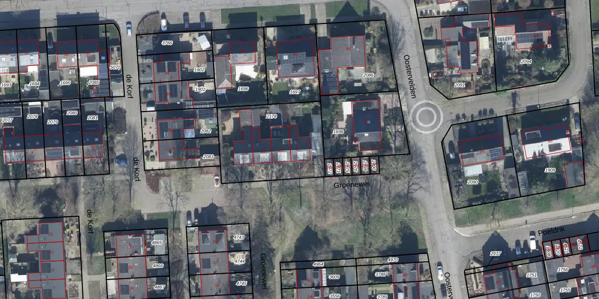 Het perceel waarop Groenewei 27 staat heeft een oppervlakte van 883 m². Dit is een groot perceel. De perceeloppervlakte wordt geregistreerd door het Kadaster. Gedetailleerde informatie over de maten van dit perceel kunt u vinden in het rapport Kadastrale kaart met maatvoering van Groenewei 27.