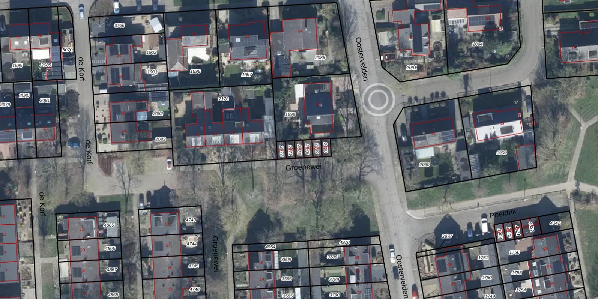 Gebruik de zoekbalk of klik op een perceel voor informatie over de adressen binnen dit perceel.