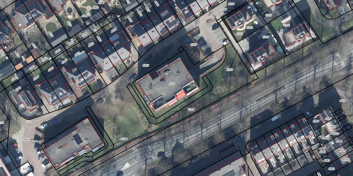 Het perceel waarop Gruit 13 staat heeft een oppervlakte van 1008 m². Dit is een zeer groot perceel. De perceeloppervlakte wordt geregistreerd door het Kadaster. Gedetailleerde informatie over de maten van dit perceel kunt u vinden in het rapport Kadastrale kaart met maatvoering van Gruit 13.